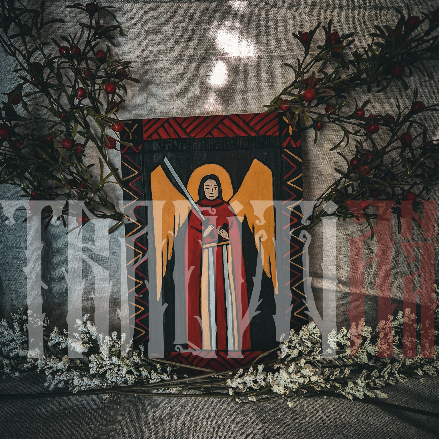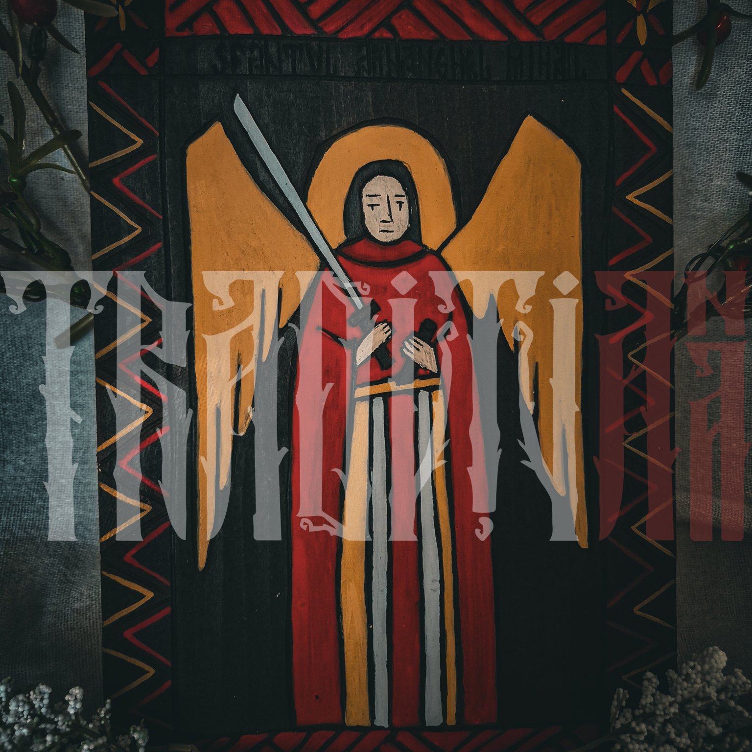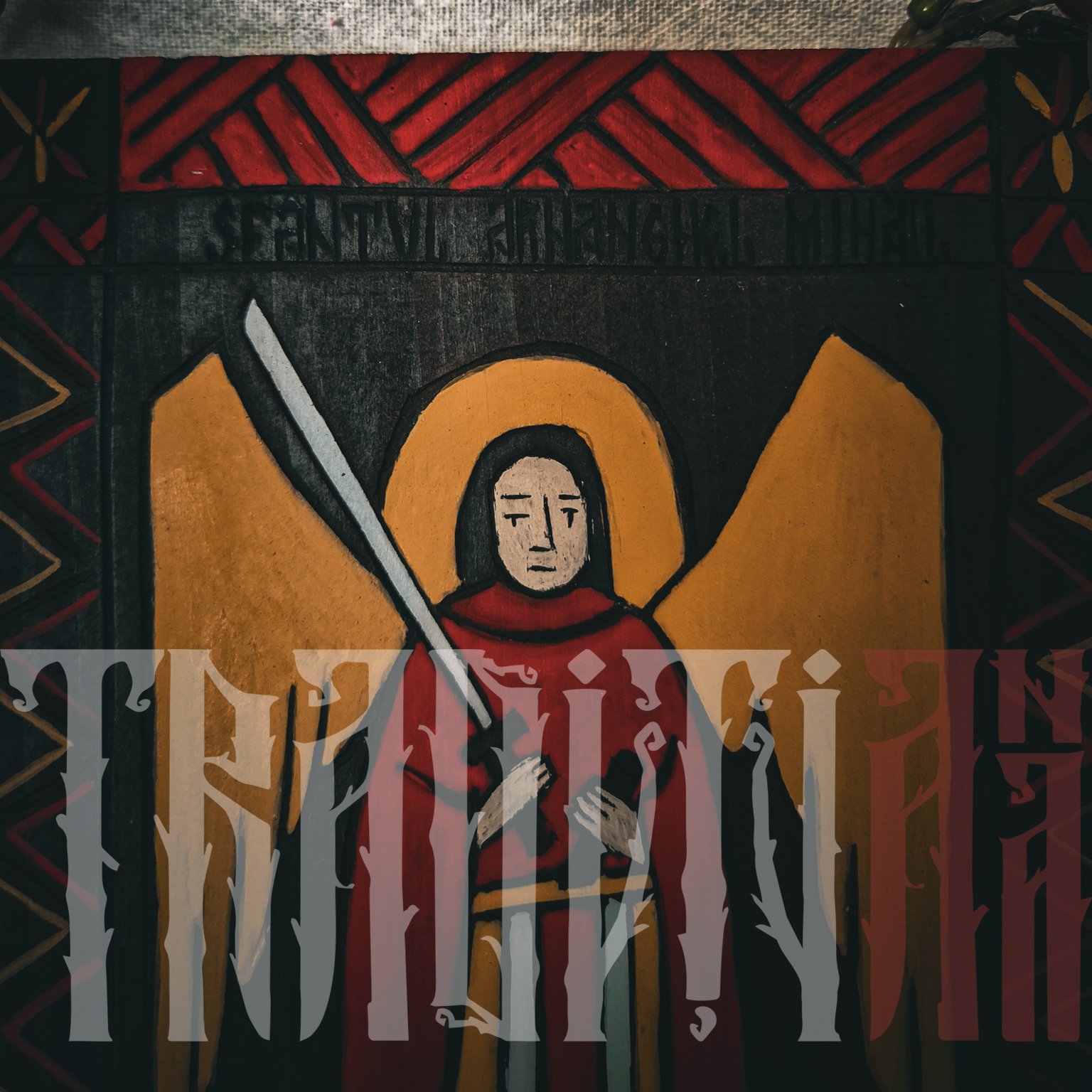 Sfântul Arhanghel Mihail este conducătorul oștirilor cerești și apărător al credincioșilor în lupta împotriva răului. Sabia pe care o ține este simbolul dreptății divine, al biruinței asupra răului și al protecției. Fundalul blatului de lemn este încadrat de un brâu decorativ geometric incizat și pictat în culori calde, amintind de brâurile tradiționale.