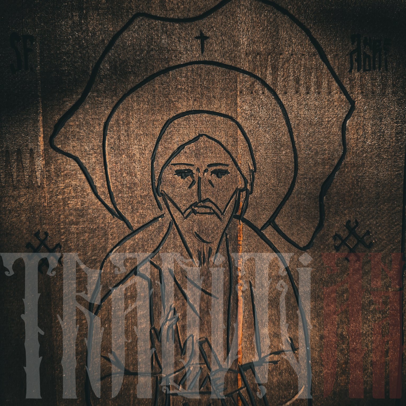 Sfântul Andrei, Apostolul care a încreștinat poporului român alături de Sfântul Apostol Filip, este reprezentat în această icoană într-o compoziție unică. În fundal este înfățișată silueta hărții României, dimpreună cu ținuturile sale istorice. Această imagine simbolizează unitatea poporului român, indiferent de epoca istorică, un simbol întărit de către motivele tradiționale incizate.