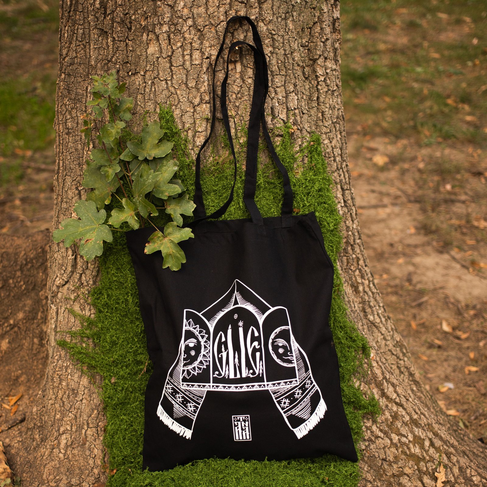 Ilustrația "Glie" reprezintă o compoziție simbolică inspirată din tradiția românească, realizată într-un stil grafic ce amintește de tehnica linogravurii. Compoziția centrală prezintă cuvântul "GLIE" stilizat, încadrat într-un triptic. În jurul literelor se regăsesc simboluri ale vieții și naturii - brazi stilizați ce cresc din și între litere, sugerând legătura profundă cu pământul și pădurea, elemente esențiale ale peisajului românesc. Întreaga compoziție este o celebrare vizuală a conceptului de "glie" - pământul strămoșesc, cu toate valorile, tradițiile și elementele sale sacre, reprezentând legătura profundă a românului cu natura, cosmosul și rădăcinile sale culturale.